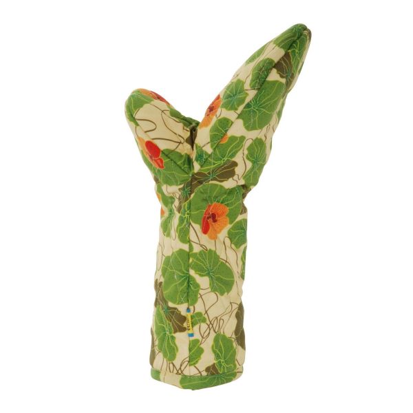 Gorgeous 100% organic cotton oven mitten in beautiful nasturtium print.