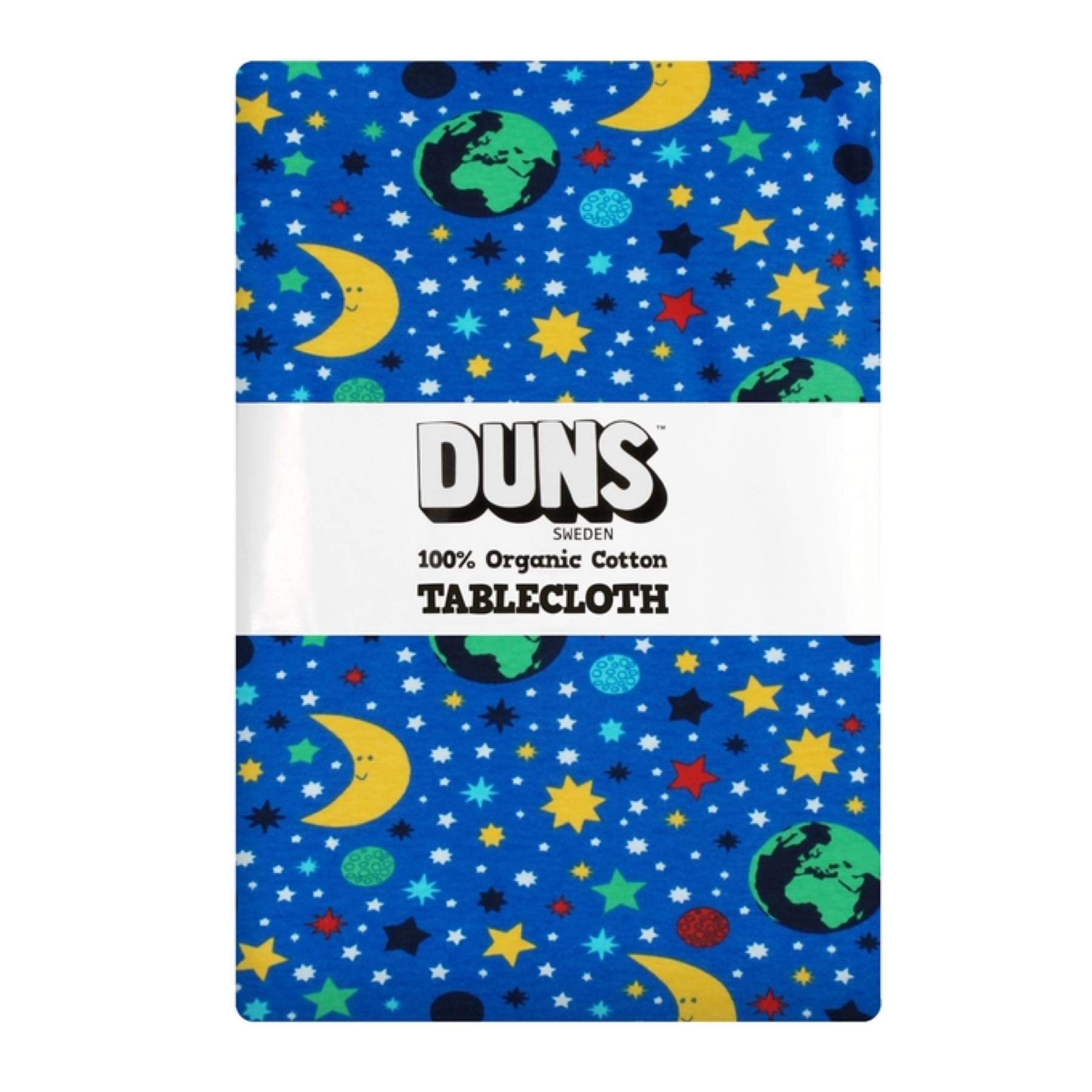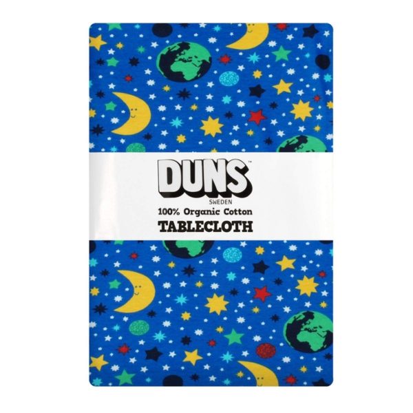 Gorgeous 100% organic woven cotton tablecloth in beautiful mother earth print on blue background.