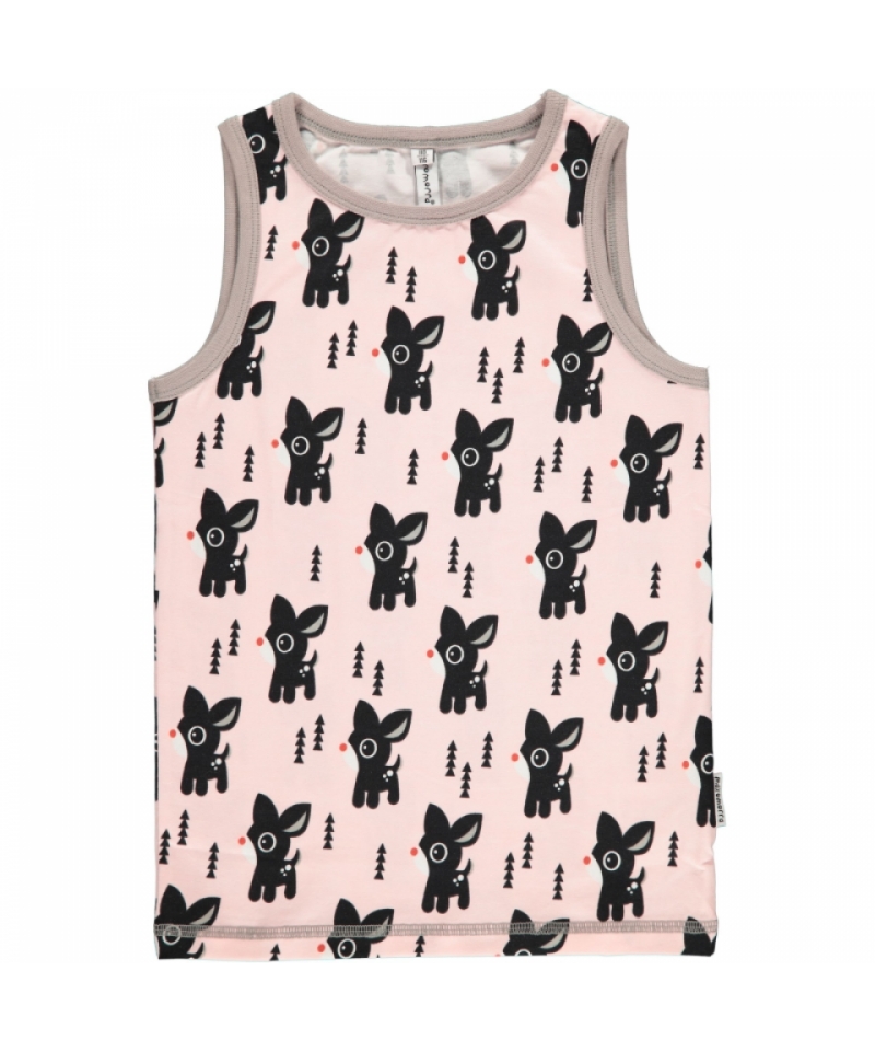 Organic tank top in pale pink with bambi all over print and grey trim. Perfect for keeping your little ones warm when the weather gets cooler.