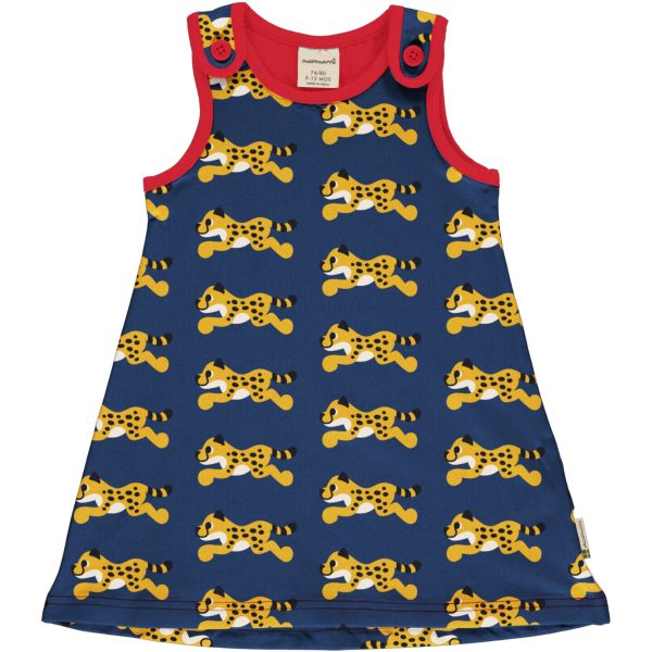 Organic cotton sleeveless play dress in beautiful cheetah print.