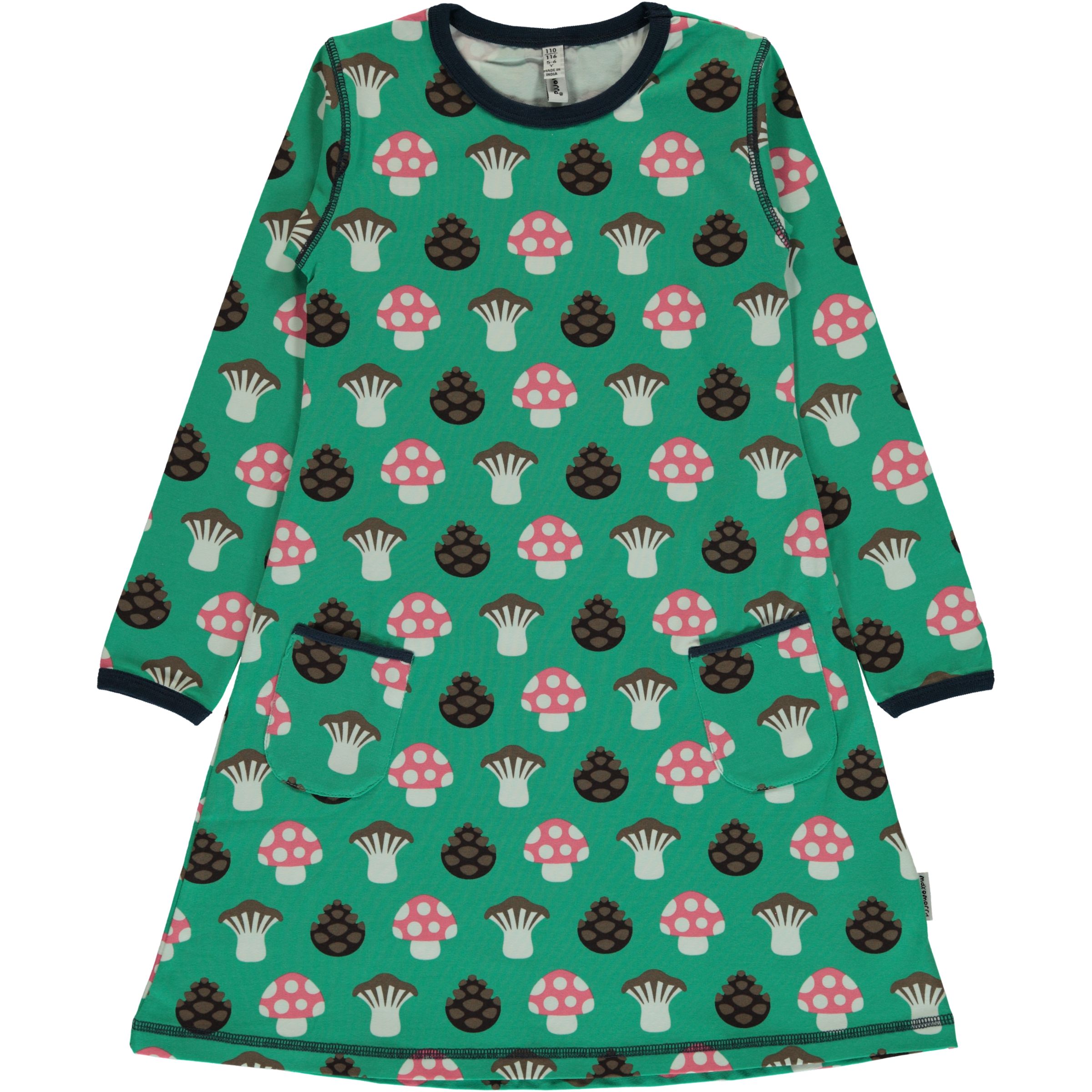 Gorgeous organic cotton long sleeved dress in all over mushroom and pine cone print with two cute front pockets.