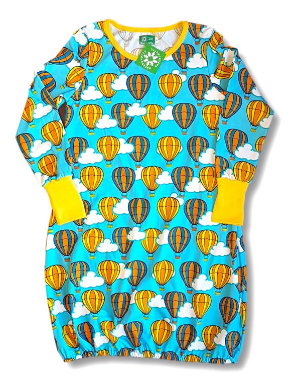 Organic cotton long sleeved women’s dress in amazing hot air balloon print