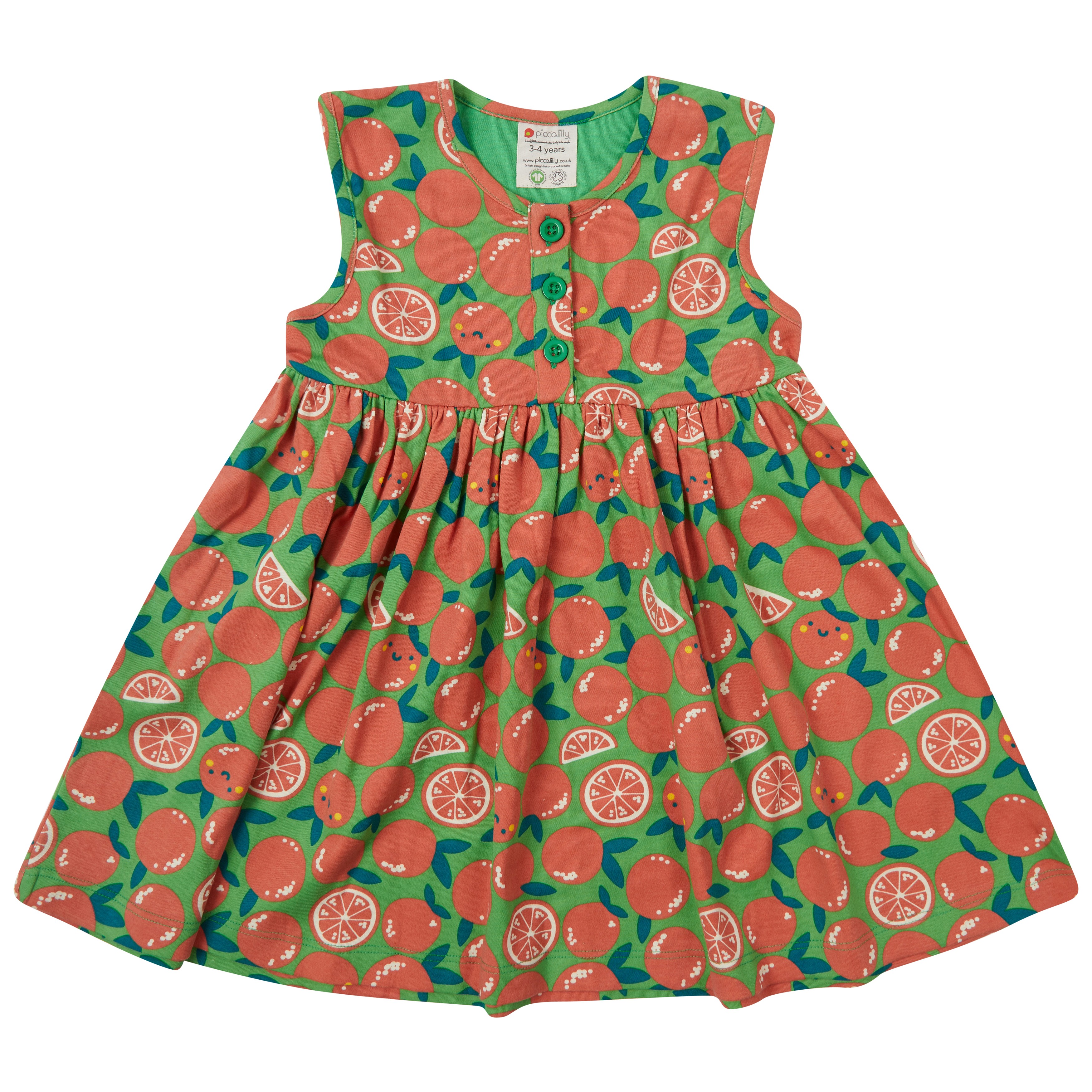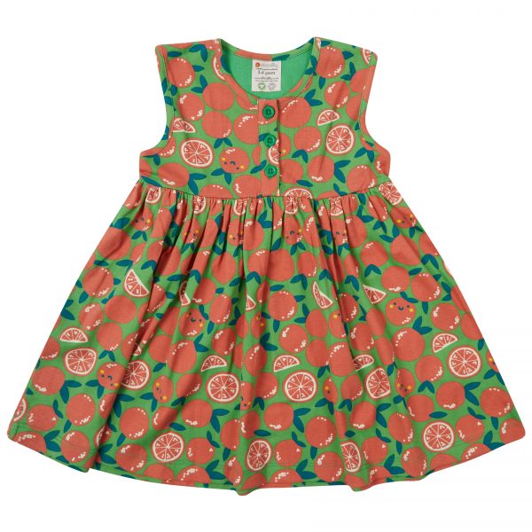 Gorgeous organic cotton long sleeved dress with fabulous oranges print.