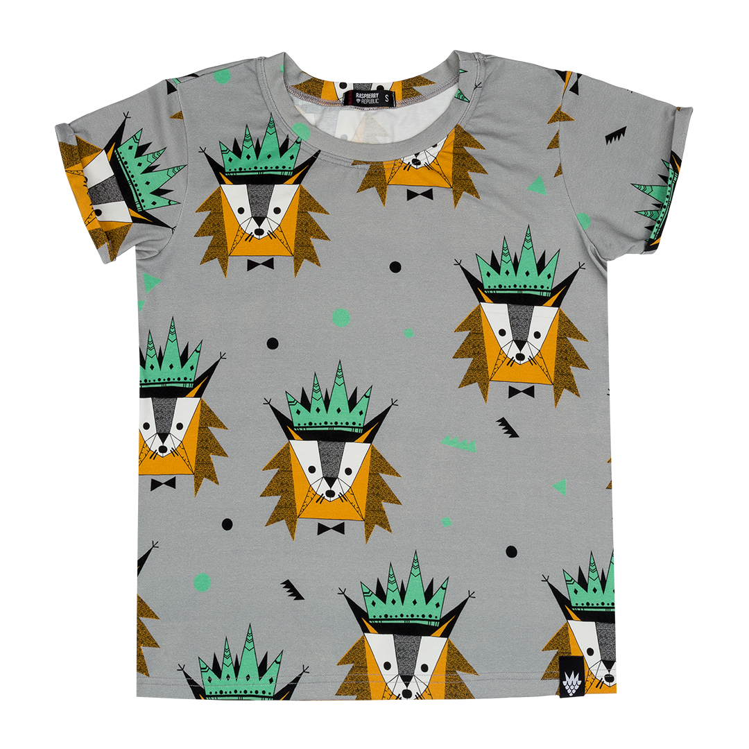 Fab organic cotton ss adult top in fab Mr Bobcat print.