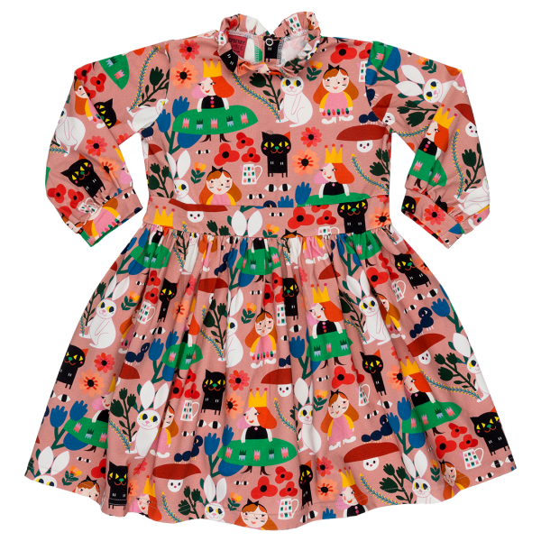 Gorgeous organic cotton long sleeved dress in fabulous rabbit hole print.