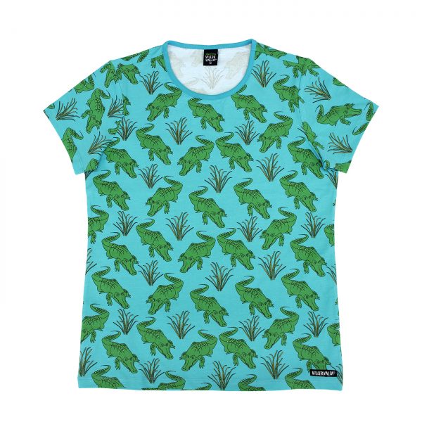 Organic cotton adult ss top in fab crocodile print.