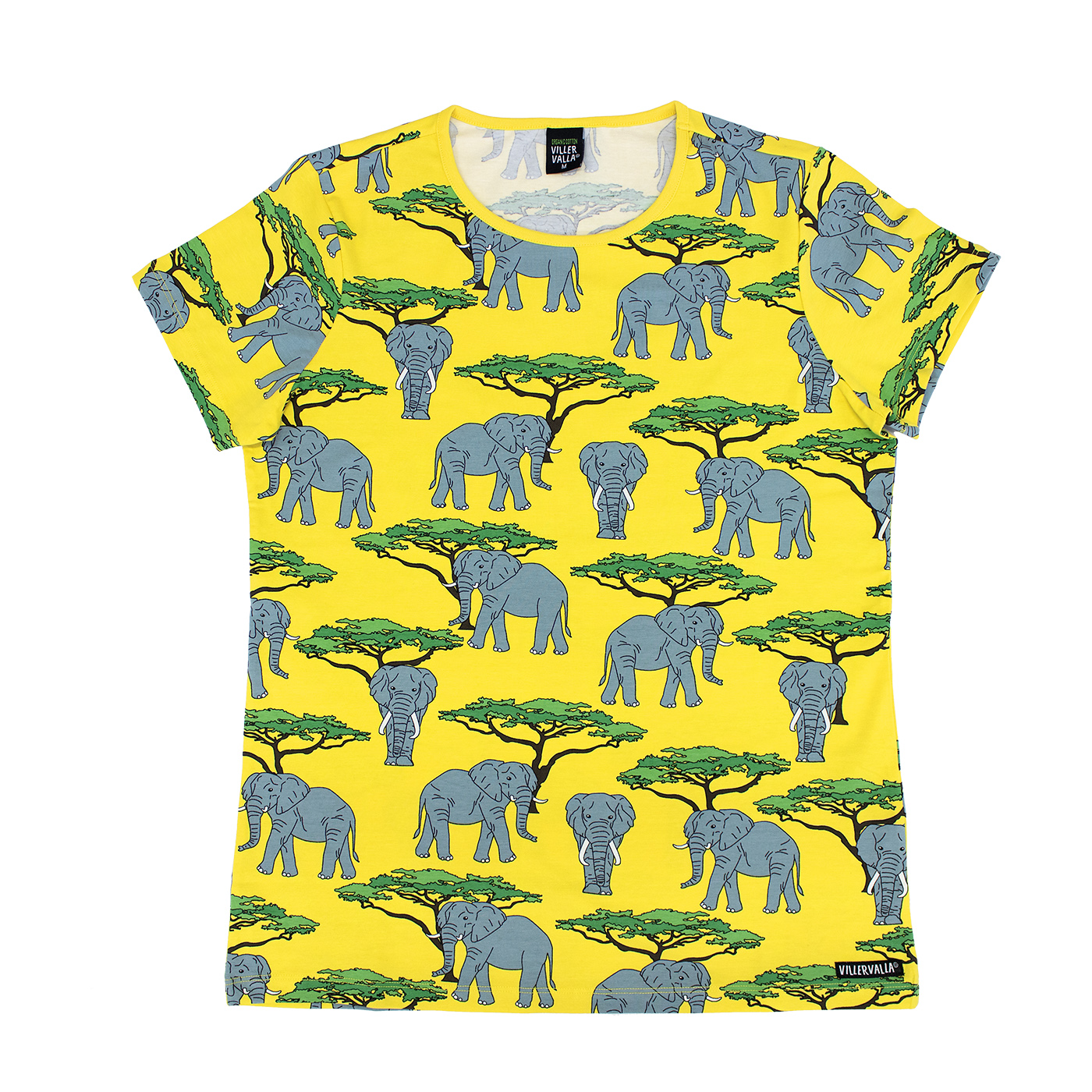 Organic cotton adult ss top in fab elephant print.
