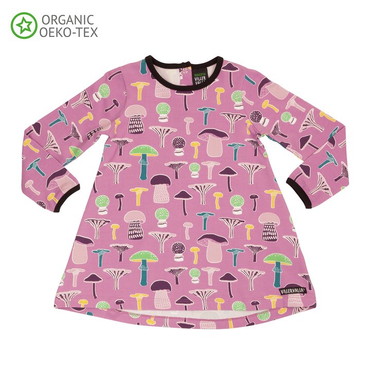 Fabulous organic cotton long sleeved tunic in light grape with all over mushroom print.